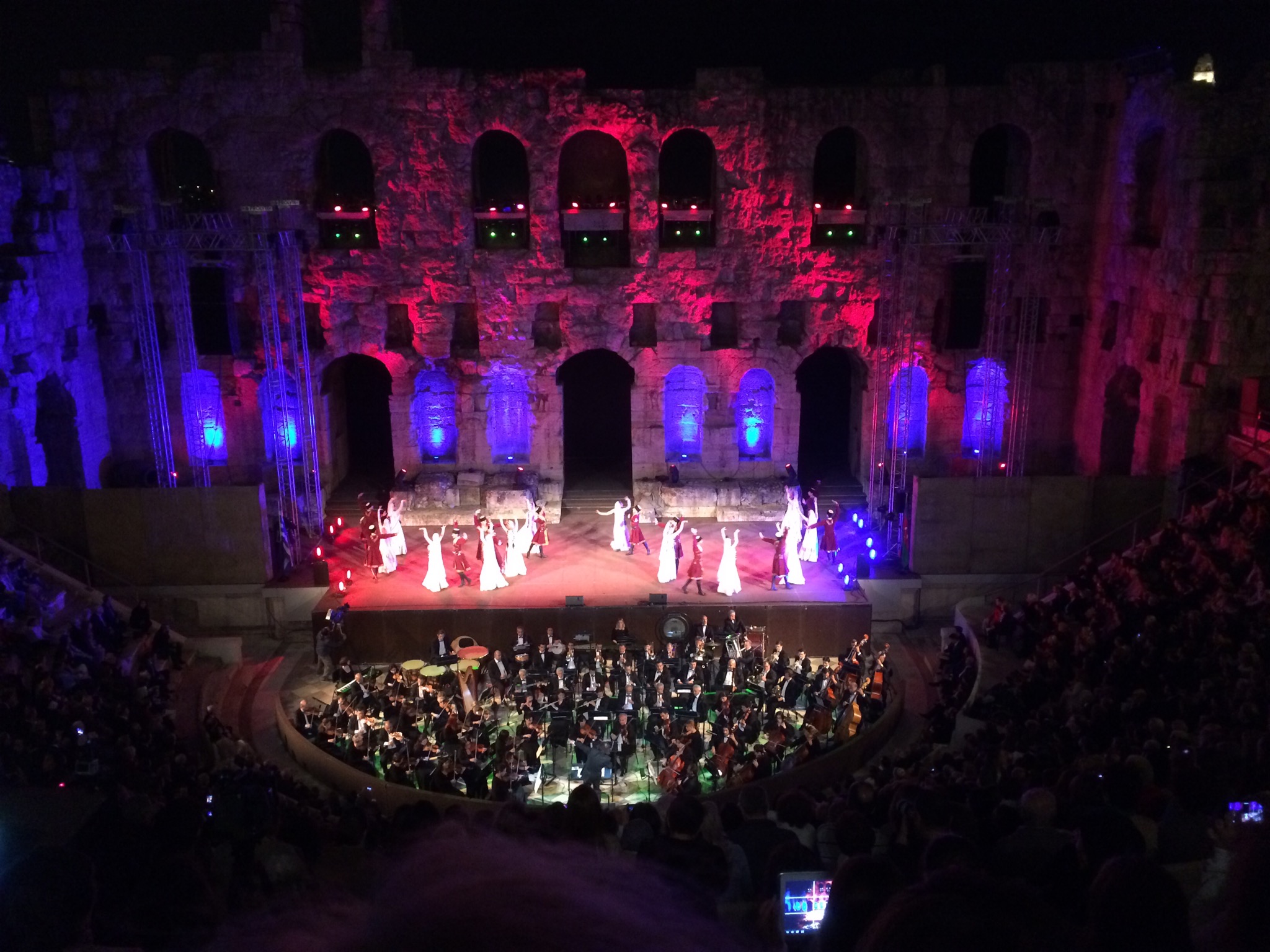 When one is given a chance to attend a full orchestral performance in a theatre some 1,900 years old, one doesn’t turn it down. Thus it was that I found myself buying a €5 ticket to gain access to the Odeon of Herodes Atticus, in the shadow of the Acropolis, there to watch a performance by the Azerbaijan National Orchestra and several other Azerbaijani performers, notable among them a troupe of dancers.