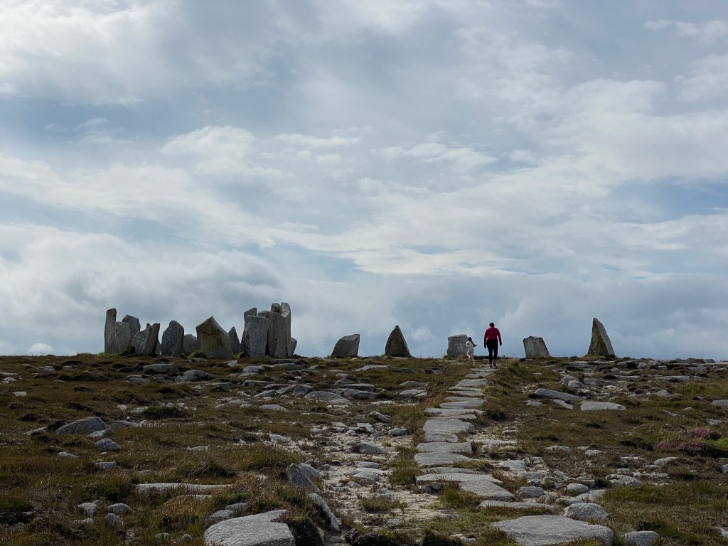 Over the three-ish days we had in Carrowteige, we did as much exploring as sea swimming and a desire for rest and relaxation allowed. Our trips usually began with us seeking out coffee for the SysAdmin (for SysAdmins need coffee in much the same way that the rest of us need air) but we ventured further onto nearby Belmullet, both north to the lighthouse and south to a rocky promontory where we found a stone spiral erected as part of a sculpture trail, where the peaks of Achill Island can be seen across the water.