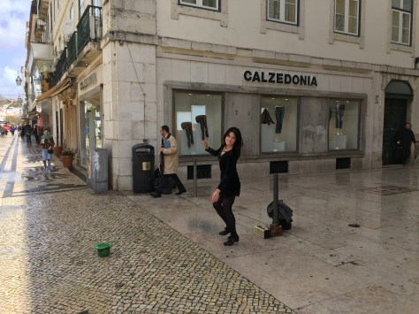 Which made a mixed blessing of the second advantage of travelling so early: having an extra day to spend in your destination. I was too early to check in to the Diamond Guesthouse by half an hour, so I went wandering down Rua da Palma and Rua Augusta to the banks of the Tagus river. On the way, I passed by an Irish dancer performing in the streets (there’s no escape) and fended off several efforts to sell me sunglasses and herbal relaxation products. The sun came and went, though the cobbles were slippery with the leavings of earlier rain showers, and by the time I made my way back to Diamond Guesthouse it was time to check in.